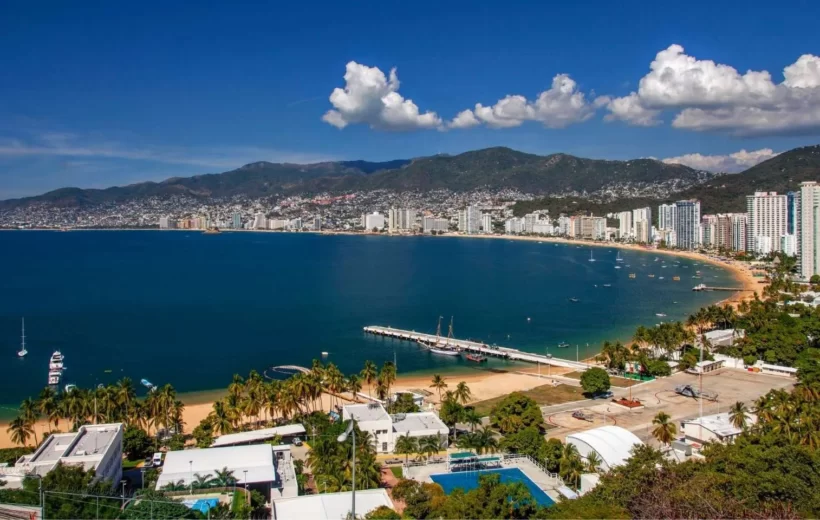 Acapulco, un balneario en la costa del Pacífico de México, se ubica en una gran bahía bordeado de edificios de muchos pisos y las montañas de la Sierra Madre del Sur. Se hizo famoso gracias al jet set en los años 1950 y 1960, y es conocido por su enérgica vida nocturna, las playas y el golf. Desde su icónico acantilado de La Quebrada, los clavadistas profesionales se lanzan desde 40 m para sumergirse en una pequeña caleta en el océano todos los días y noches.