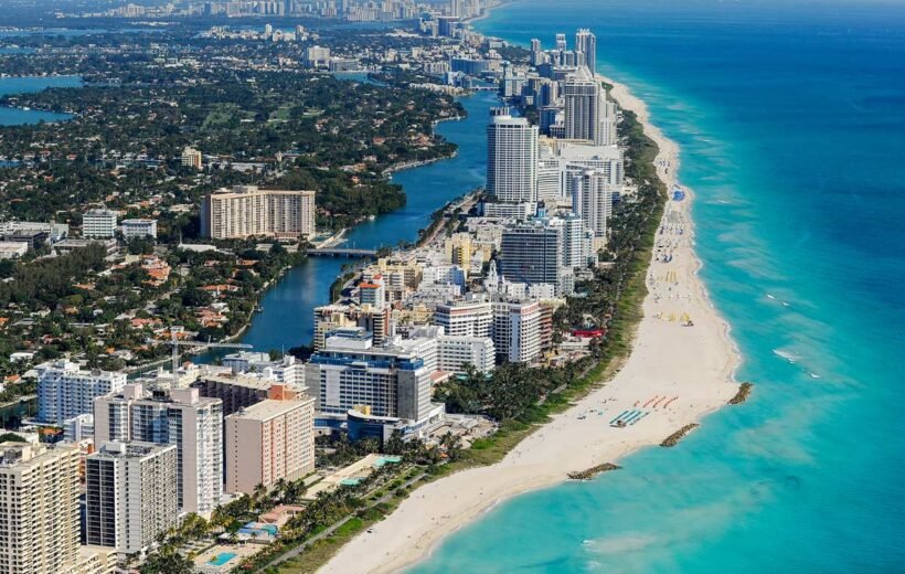 Miami es una ciudad internacional en el extremo sureste de Florida. La influencia cubana se refleja en los cafés y las tabaquerías de la Calle Ocho en la Pequeña Habana. En las islas de barrera, al otro lado de las aguas turquesa de Bahía Vizcaína, se encuentra Miami Beach, en la cual se ubica South Beach. Este glamoroso barrio es famoso por sus coloridos edificios art déco, la arena blanca, los hoteles junto al mar y los clubes vanguardistas.